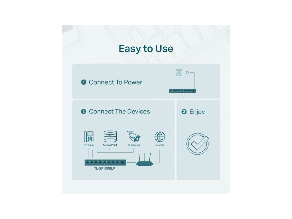- Skvělý plug-and-play switch TP-Link TL-SF1008LP nabízí dokonalé řešení pro vaší domácí i firemní síť bez nutnosti konfigurace a instalace