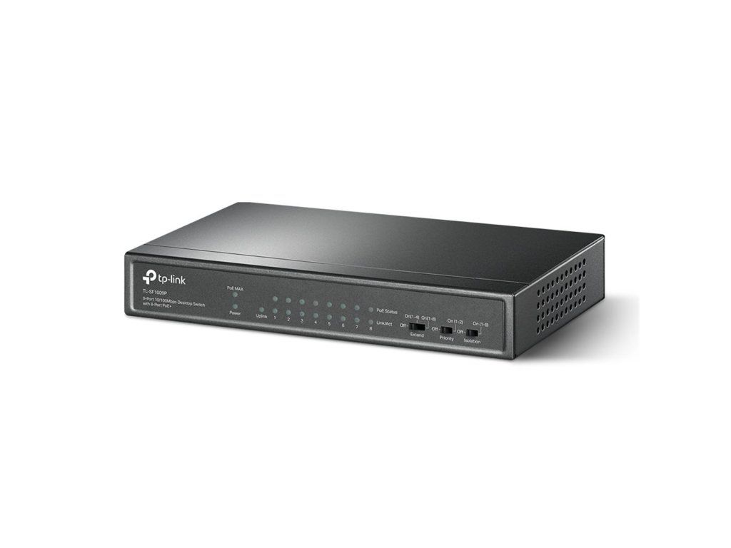 TL-SF1009P je 9portový 10/100M PoE switch s funkcí priority portů, který umožňuje napájet na dálku zařízení s podporou normy 802.3af /48 V. Pro napájení slouží prvních 8 portů, další 1 port pak slouží jako klasický switch. Porty automaticky detekují zařízení, která jsou s tímto standardem kompatibilní. PoE switch se výborně hodí tam, kde není k dispozici el. zásuvka např. na střechách, půdách, stožárech atd., anebo pokud chcete ušetřit na dalších kabelech nutných pro napájení zařízení.