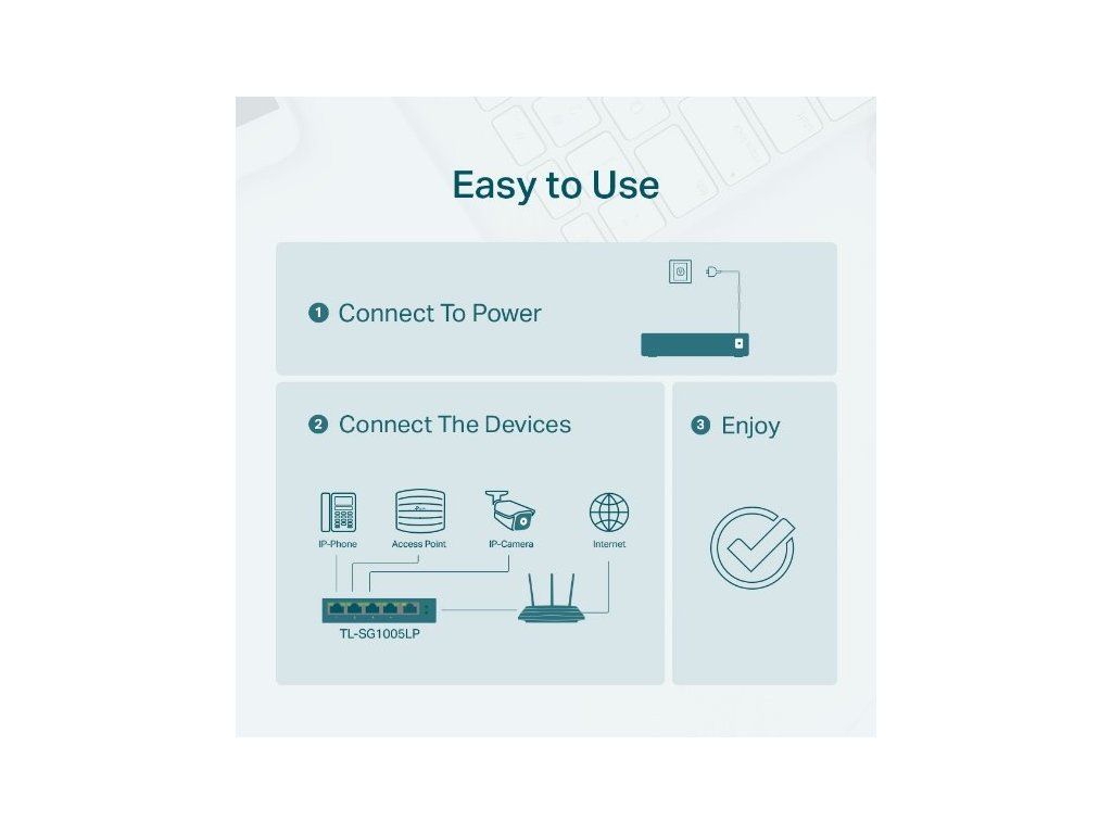 - Skvělý plug-and-play switch TP-Link TL-SG1005LP nabízí dokonalé řešení pro vaší domácí i firemní síť bez nutnosti konfigurace a instalace