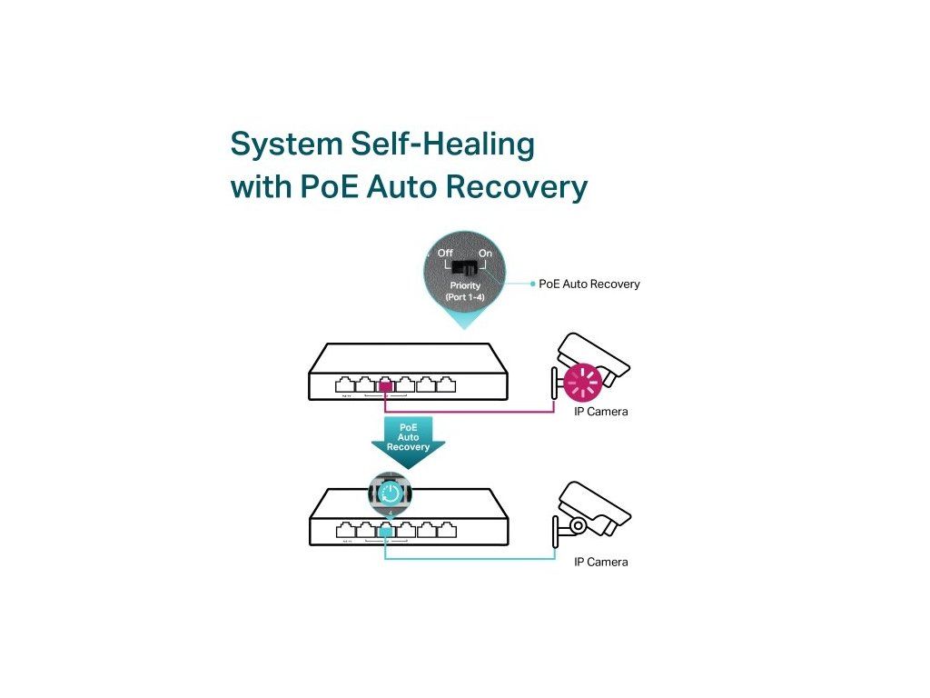 Přepnulo se vaše zařízení do offline režimu, nastala chyba nebo nereaguje? Funkce automatického obnovení PoE se postará o restart těchto zařízení, která jsou připojená a napájená přes PoE. Jejich provoz je stabilní a nemusíte se skoro o nic starat.