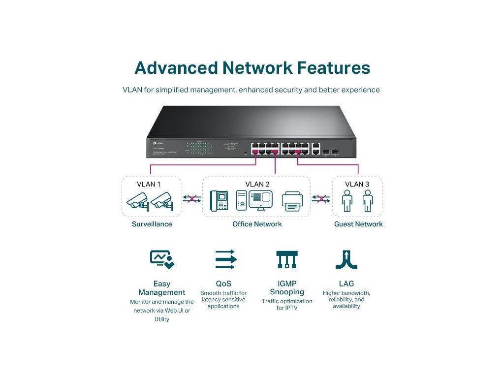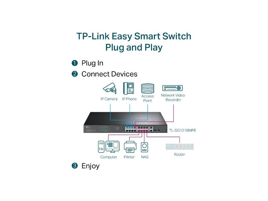 TP-Link TL-SG1218MPE Smart je víceúčelový PoE switch s vysokým výkonem. Switch nabízí velmi jednoduché použití. Zapojte jej do elektřiny a do internetové sítě, připojte potřebná zařízení a užívejte si výhody dokonalého propojení.