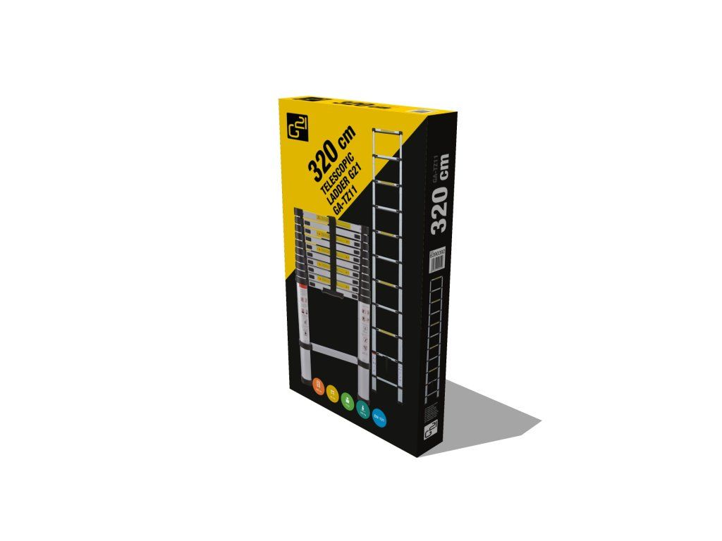 Teleskopický žebřík G21 GA-TZ11-3,2M původně vyvinutý pro profesionály, je špičkový model, který se vyznačuje dostatečně pevnou a odolnou konstrukcí, díky systému duralových profilů. Na jeho konstrukci byly využity lehké hliníkové materiály, které snižují jeho celkovou hmotnost a zároveň zabezpečují složení žebříku do minimální úložné velikosti.