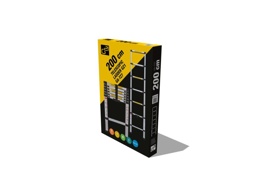 Teleskopický žebřík G21 GA-TZ7-2M původně vyvinutý pro profesionály, je špičkový model, který se vyznačuje dostatečně pevnou a odolnou konstrukcí, díky systému duralových profilů. Na jeho konstrukci byly využity lehké hliníkové materiály, které snižují jeho celkovou hmotnost a zároveň zabezpečují složení žebříku do minimální úložné velikosti.