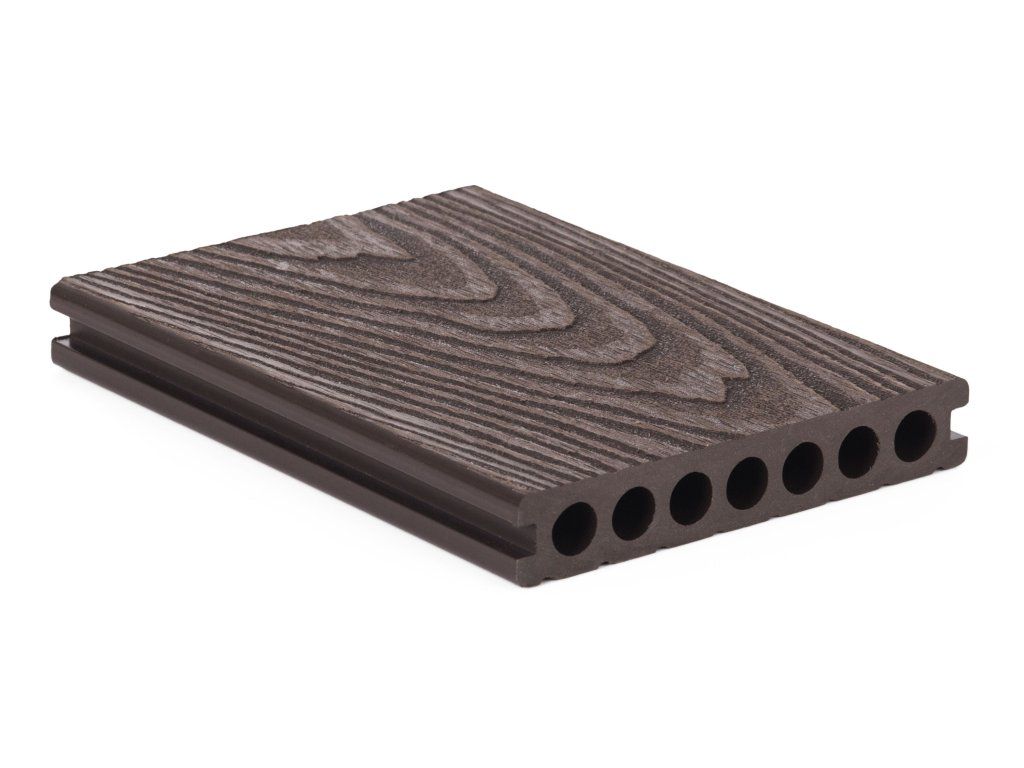 Terasové prkno G21 2,5 x 14,8 x 300 cm, Dark Wood s kulatými výřezy, WPC, 63910411