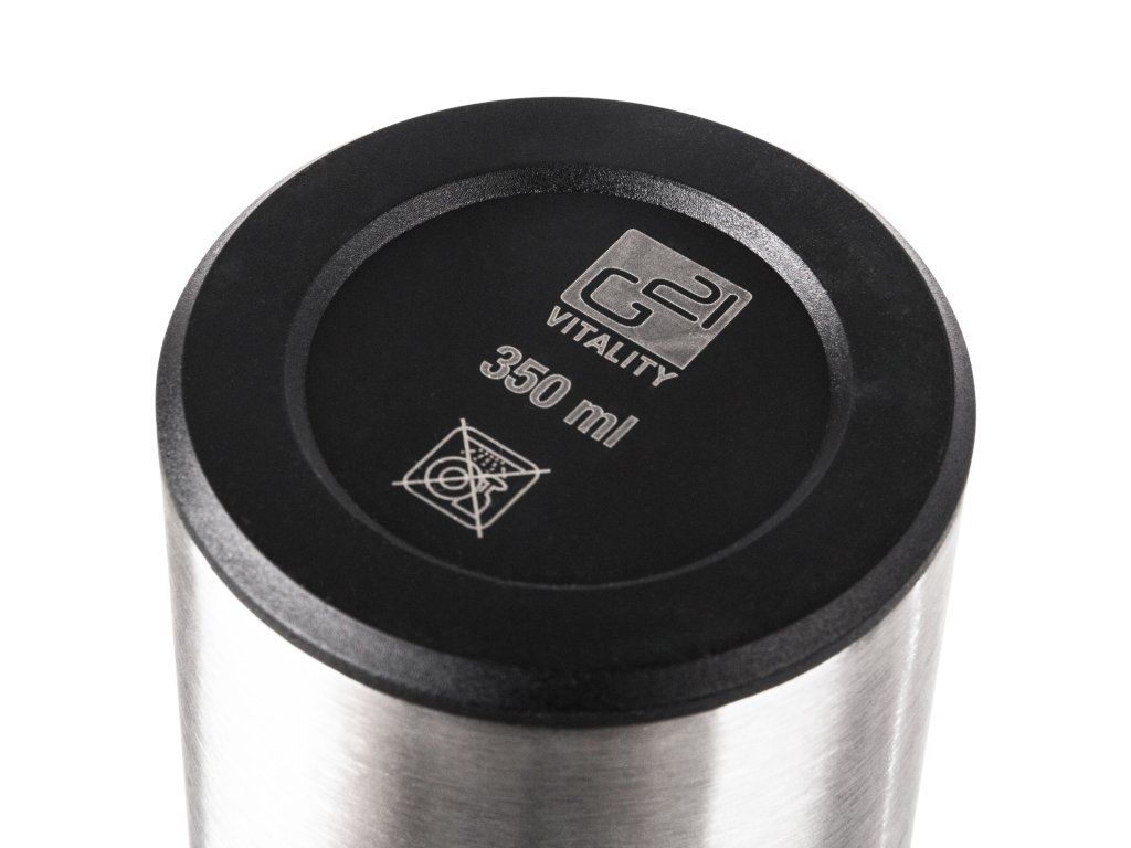 Největší předností termohrnku G21 je kvalitní termoizolace. Termoláhev z nerezové oceli má dvojité stěny a dokonale těsnící víčko. Nápoje tak udrží v požadované teplotě opravdu dlouho – horké až 12 hodin, studené k osvěžení až 24 hodin.