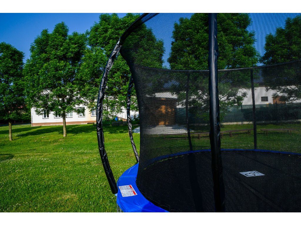 - Ochranná síť trampolíny je z vnitřní strany konstrukce, skákání na trampolíně je tak bezpečnější
