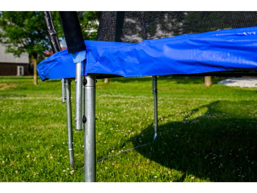 Velkou pozornost jsme věnovali i spolehlivému zakrytí pružin trampolíny pro minimalizaci rizika poranění při skákání na trampolíně. Kryt pružin je z odolného nepromokavého materiálu s měkkou výplní. Kryty bočních sloupků trampolíny jsou také obaleny měkkou pěnou v nepromokavém pouzdře.