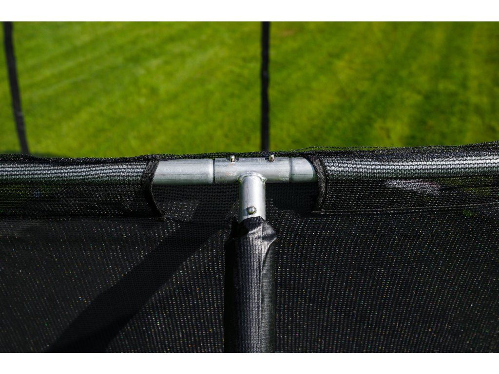 - Ochranná síť trampolíny je z vnitřní strany konstrukce, skákání na trampolíně je tak bezpečnější