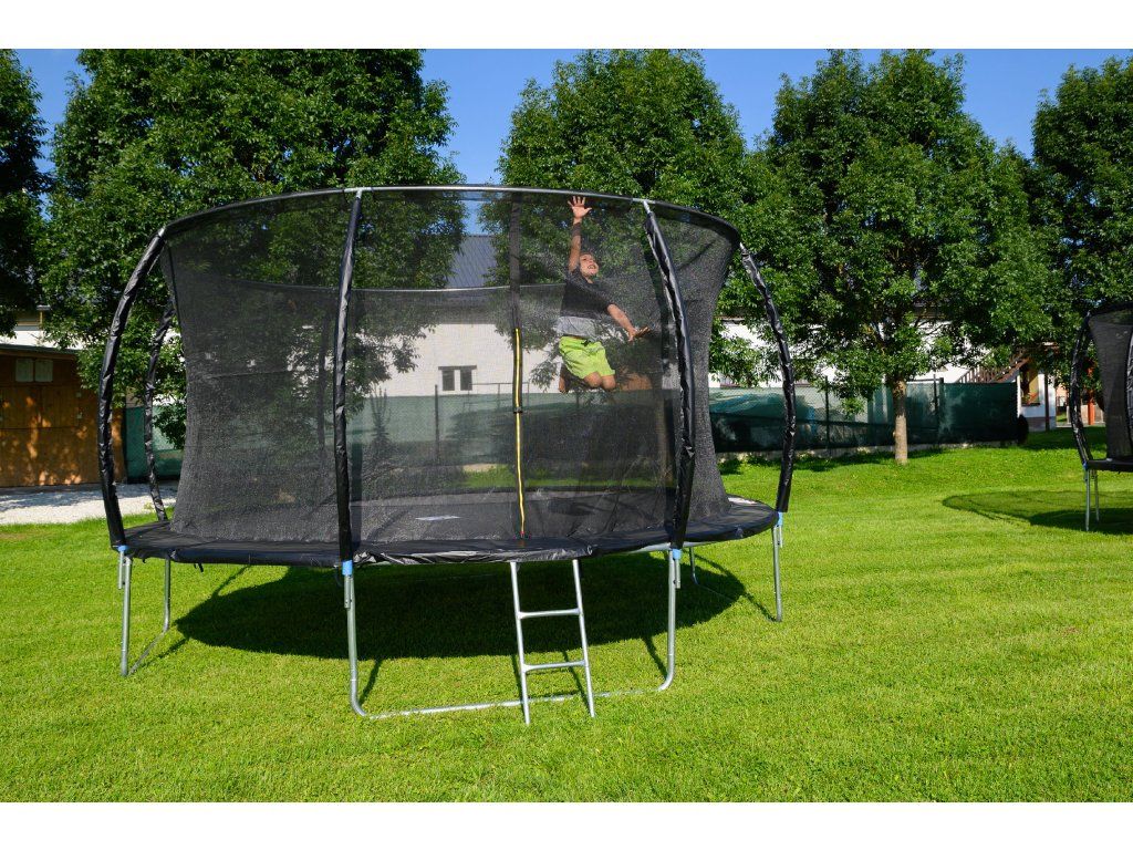 Trampolína G21 SpaceJump 430 cm, černá, s ochrannou sítí + schůdky zdarma, 6904270