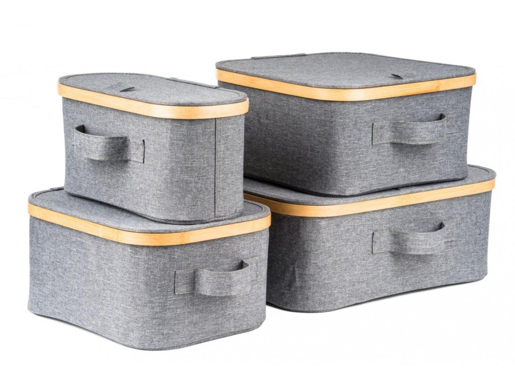 Úložný box G21 24 x 30 x 15 cm, bambusový s víkem, šedý, 63555301