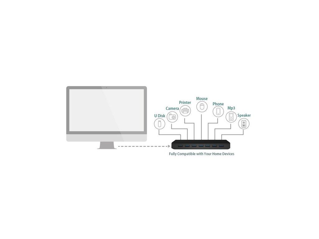 Výstupy: 7x USB 3.0 Standard A, 2x 2.4A nabíjecí porty