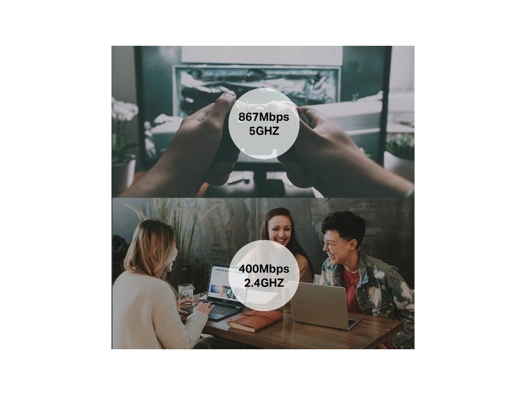 | Max. přenosová rychlost 5 / 2,4 GHz (Mb/s): | 867 + 400 |