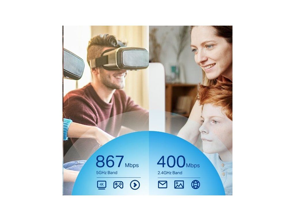 - 5GHz pásmo s rychlostí 867 MB/s pro streamování ve 4K a hraní počítačových her bez zpoždění