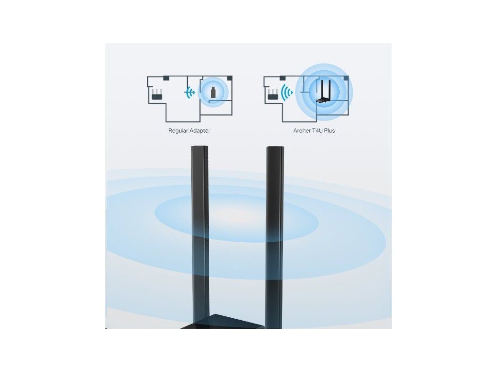 Ve dvou pásmech USB klient zajistí kombinovanou rychlost až 1 300 MB/s. Díky vysokoziskovým anténám a technologii MU-MIMO efektivně eliminuje hluchá místa a zajistí ještě větší dosah signálu. MU-MIMO několikanásobně zvýší kapacitu přípojek, kdy za pomoci prostorových streamů obslouží paralelně několik klientů díky tvarování paprsků (beamformingu) vysílaného signálu. Technologie Beamforming sleduje pomocí soustavy antén umístění bezdrátových zařízení v síti a vždy usměrní WiFi signál přímo na tato zařízení. Tato chytrá distribuce signálu cíleně zesiluje bezdrátový signál a zvyšuje jeho stabilitu.