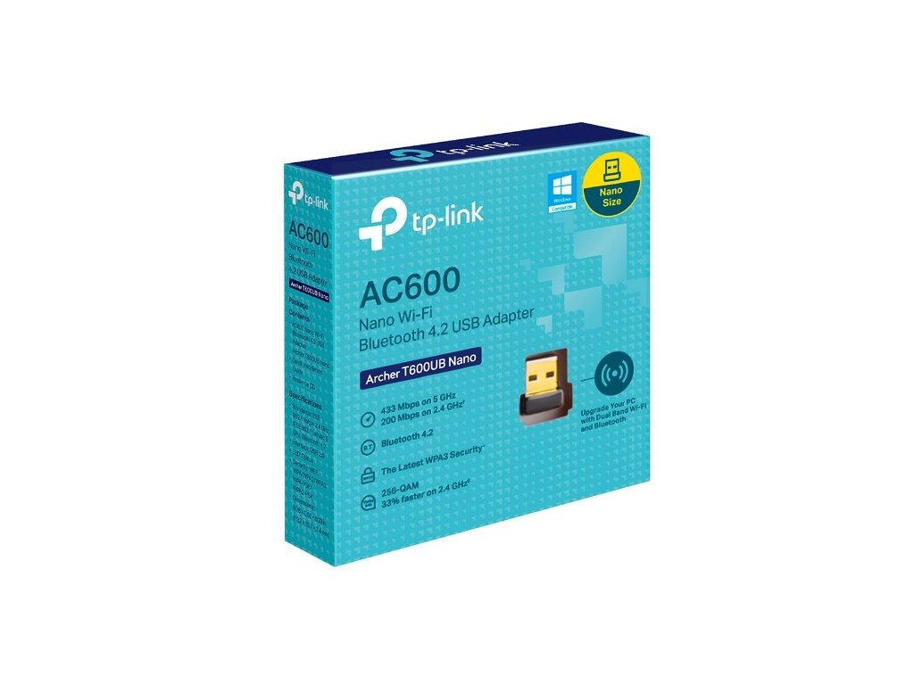 USB adaptér, lepší rychlost připojení (AC WiFi), podpora Bluetooth 4.2, rychlost sítě až 600 Mb/s (5 GHz až 433 Mb/s, 2,4 GHz až 200 Mb/s), pokročilé zabezpečení, nano design.