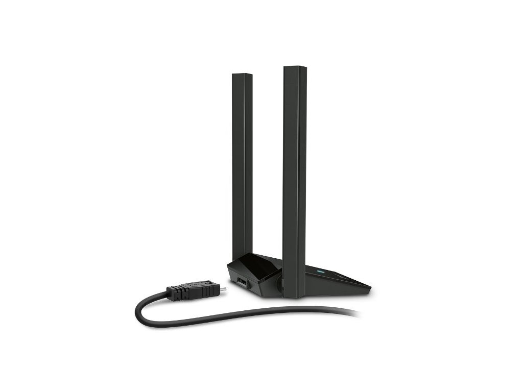 USB klient pro bleskově rychlé dvoupásmové WiFi 6, rychlost až 1800 Mb/s, duální antény s vysokým ziskem, MU-MIMO, OFDMA, zvýšená přenosová rychlost díky USB 3.0, nastavitelné vícesměrové antény, šifrování WPA3.