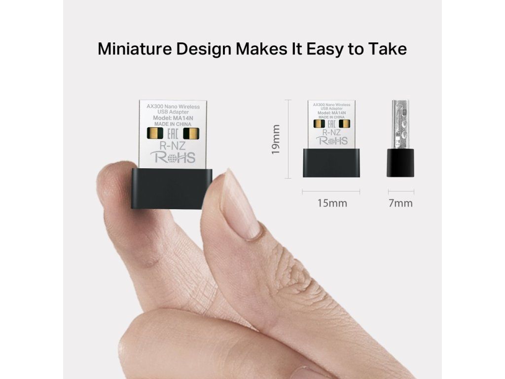 Miniaturní dvoupásmový Wi-Fi adaptér Mercusys MA14N připomíná svou velikostí adaptér od bezdrátové USB myši. Navzdory svým drobným rozměrům zvládne poskytnout přenosovou rychlost bezdrátového připojení až 287 Mbps v pásmu 2,4 GHz. Využijete ho tedy jak pro běžnou kancelářskou činnost, tak v domácnosti. Kompaktní provedení je ideální na cesty.