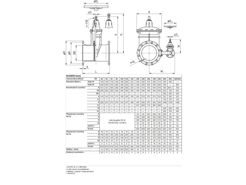 • Těleso, víko, klín: tvárná litina EN-GJS-400-15 (GGG-40)