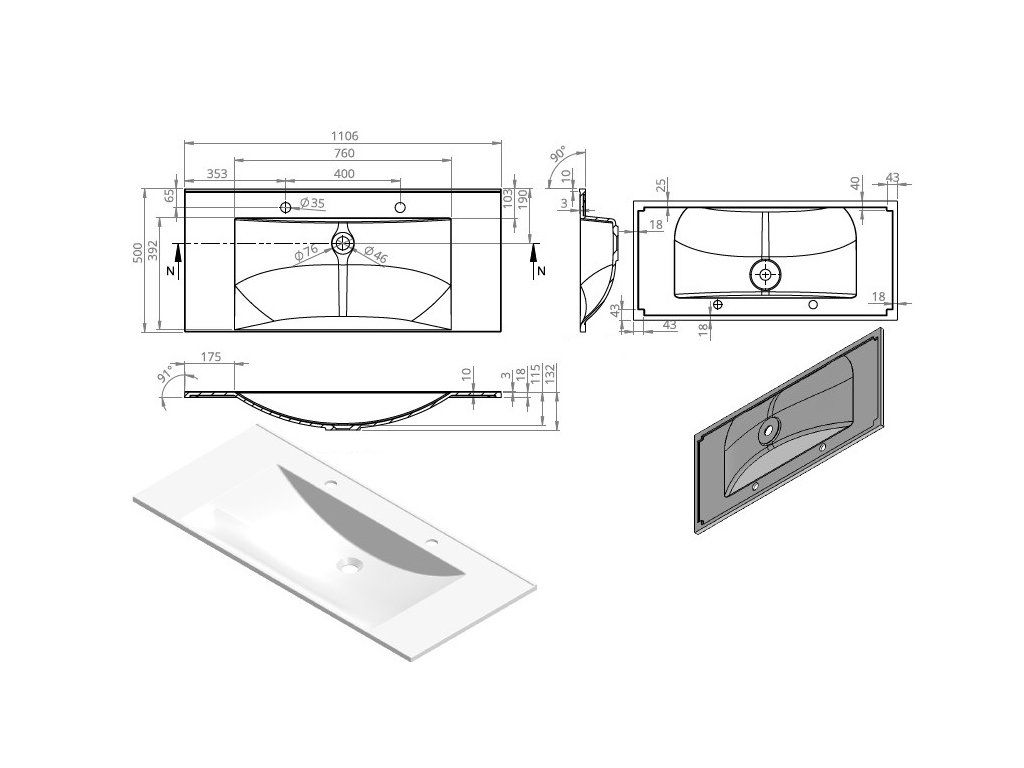| Šířka umyvadla: | 100cm a více |
