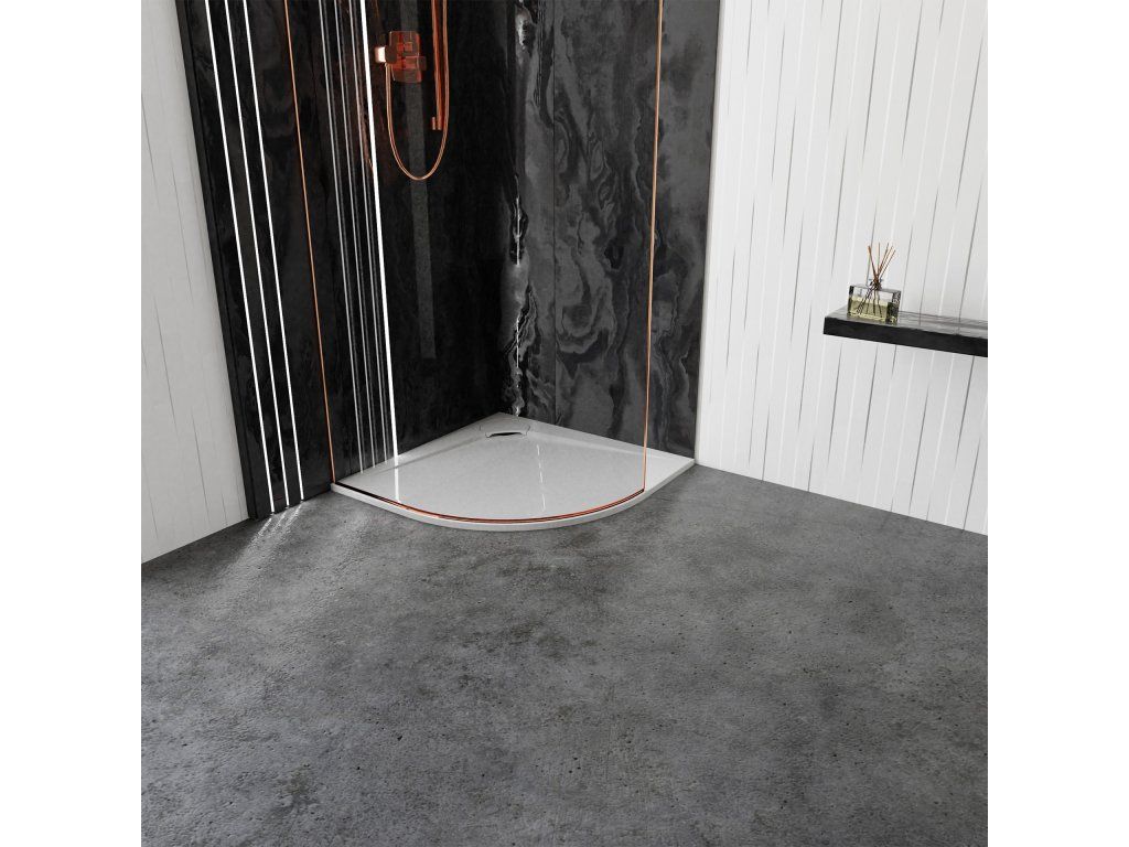 - designová čtvrtkruhová sprchová vanička