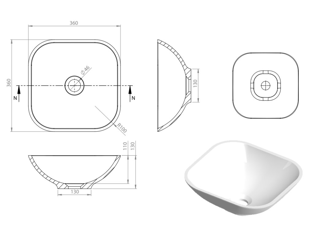| Tvar umyvadla: | čtverec |
