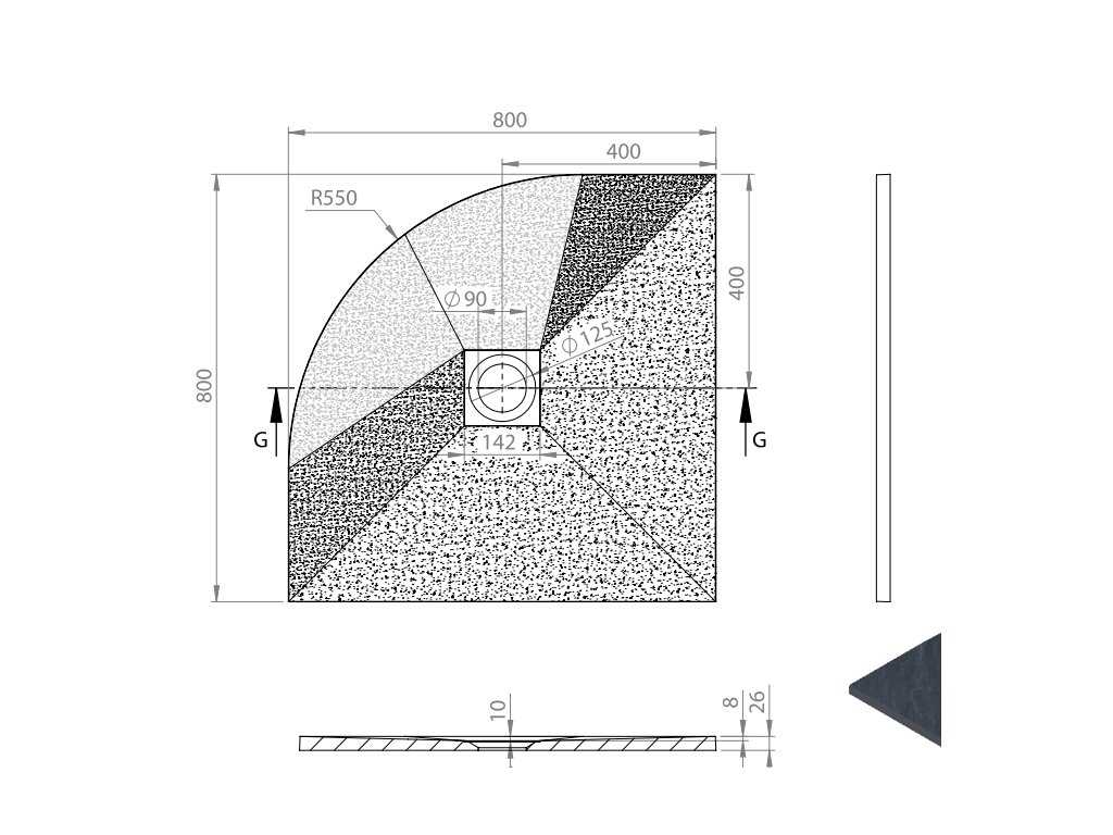 Vayer Kronos čtvrtkruhová sprchová vanička, litý mramor Rozměr vaničky: 80x80cm, VAY-KRO80X80