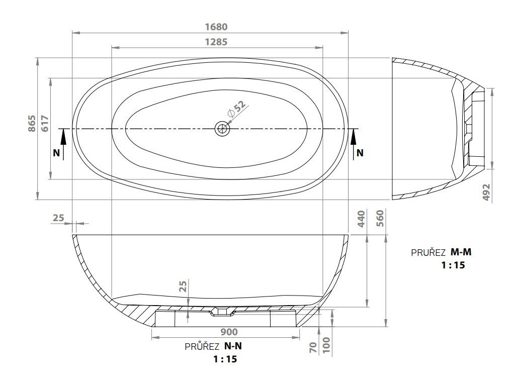 Vayer Lacerta volně stojící vana 170x85, litý mramor, VAY-LAC170