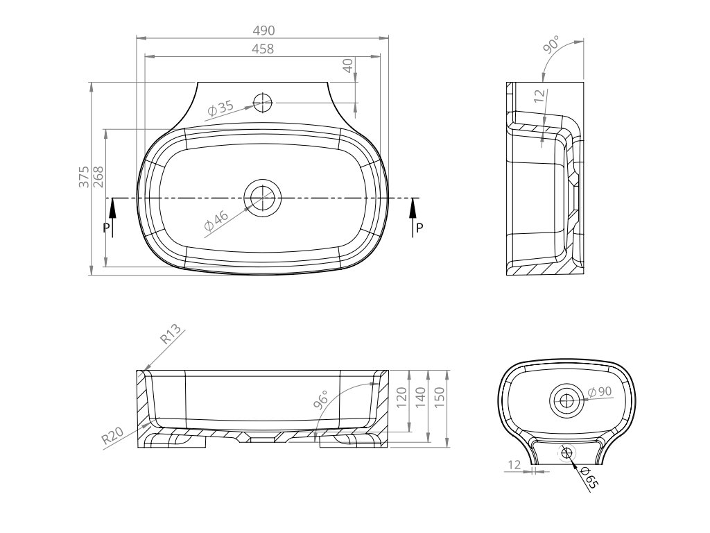 - s otvorem pro umyvadlovou baterii nebo bez otvoru
