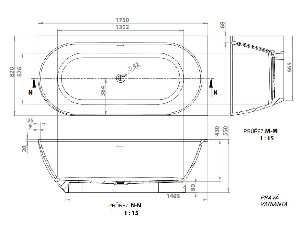 Vayer Scorpius L/P volně stojící vana 175x82, litý mramor Délka vany: 175cm, Orientace: Pravá, VAY-SC175P