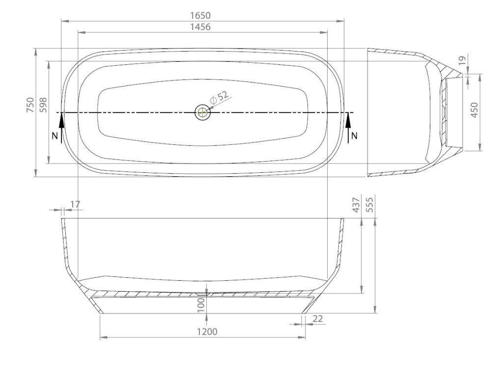 Vayer Serpens 2 volně stojící vana 165x75, litý mramor, VAY-SER2