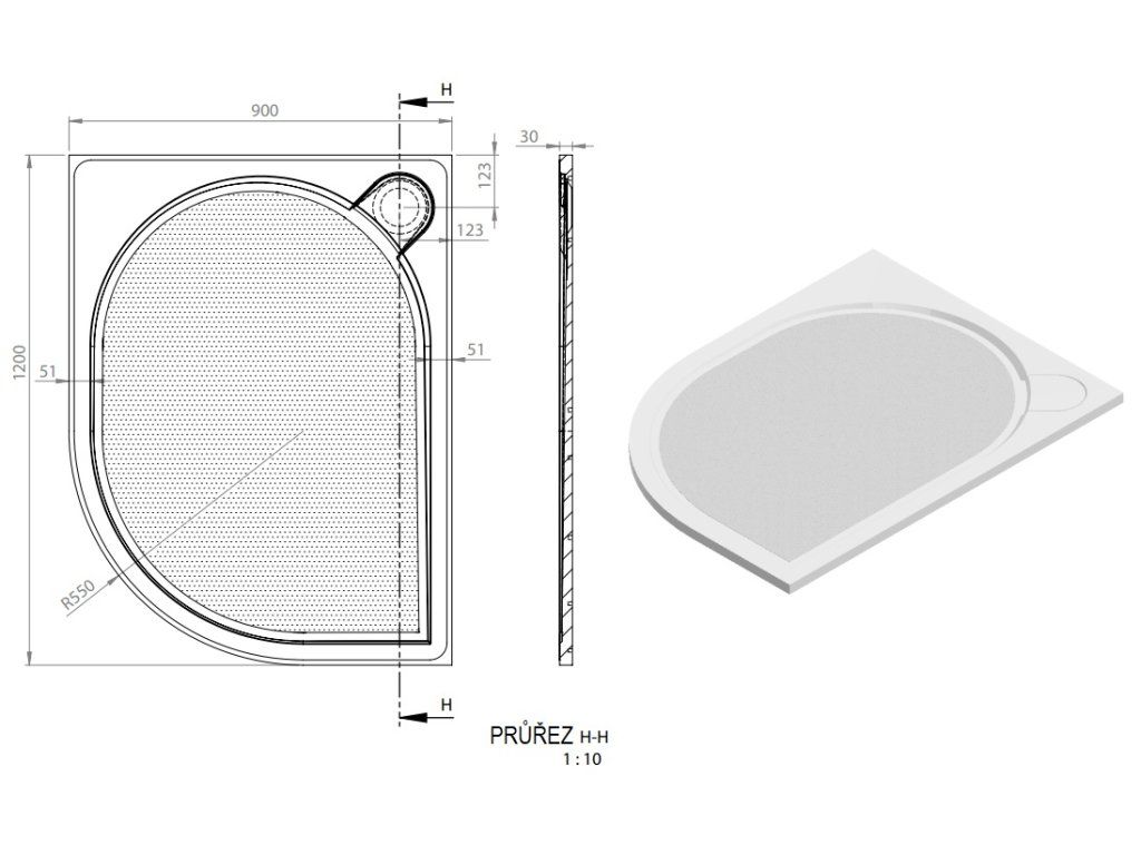 Vayer Virgo asymetrická sprchová vanička, litý mramor Orientace: Levá, Rozměr vaničky: 120x80cm, 12174_LEV