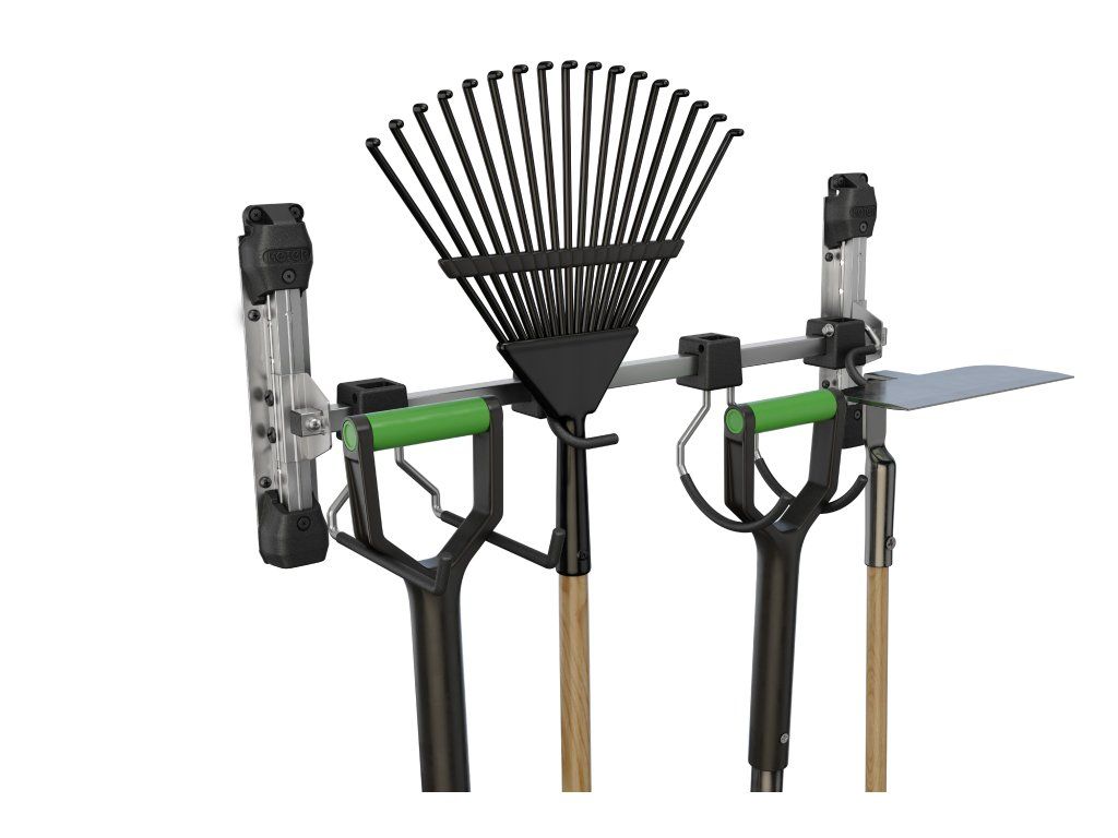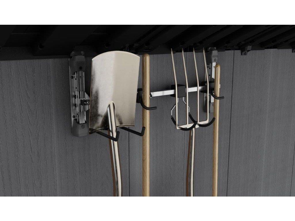 Usnadněte si skladování zahradního náčiní s dlouhou násadou, jako jsou vidle, lopaty nebo třeba hrábě. Pořiďte si multifunkční věšák Multi Purpose Wall Hanger od značky Keter. Namontujete ho do jakéhokoliv zahradního domku Keter (kromě domků Factor) a zavěsíte na něj zahradní potřeby. Jeden hák unese až 9 kg váhy. Celková nosnost věšáku je 36 kg.