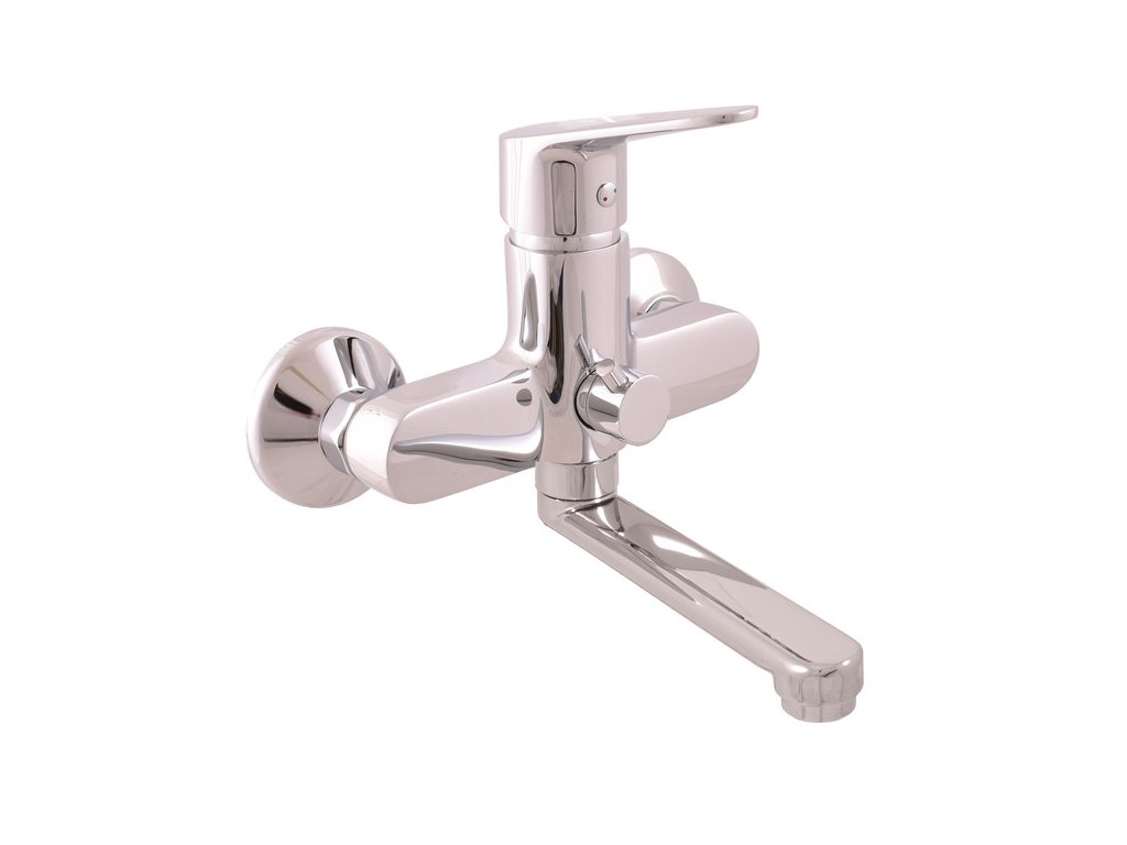 Vodovodní baterie vanová nástěnná s plochým otočným ramínkem.