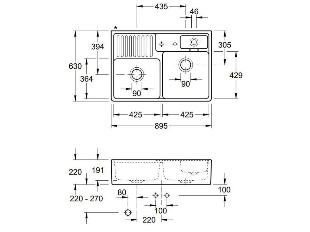 Dřez Double 895.2 nabízí dvě prostorné velké mycí komory, které jsou dostatečně hluboké i pro mytí objemných pečících plechů. V zadní části dřezu je k dispozici malá odkapávací plocha pro menší nádobí a malá vanička s plastovým sítkem např. na houbičku na nádobí případně může sloužit k rozmrazení ovoce nebo zeleniny.
