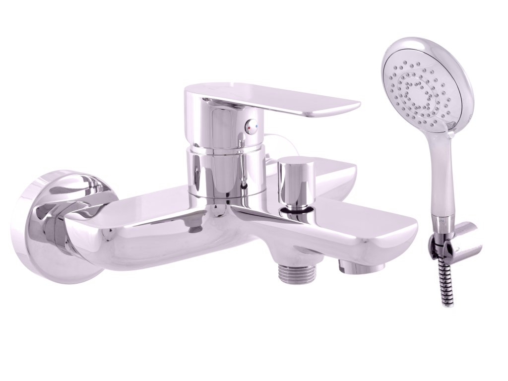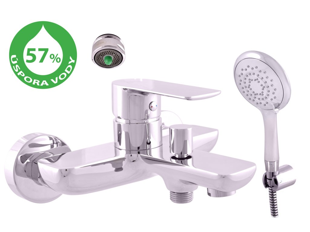 Spořící vodovodní baterie vanová nástěnná se sprchou a pevným držákem.