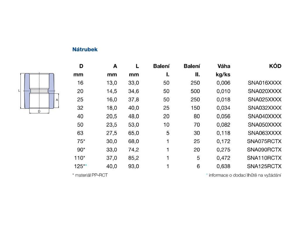 WAVIN EKOPLASTIK PPR nátrubek 75mm, svařovací, voda, PP-RCT, SNA075RCTX