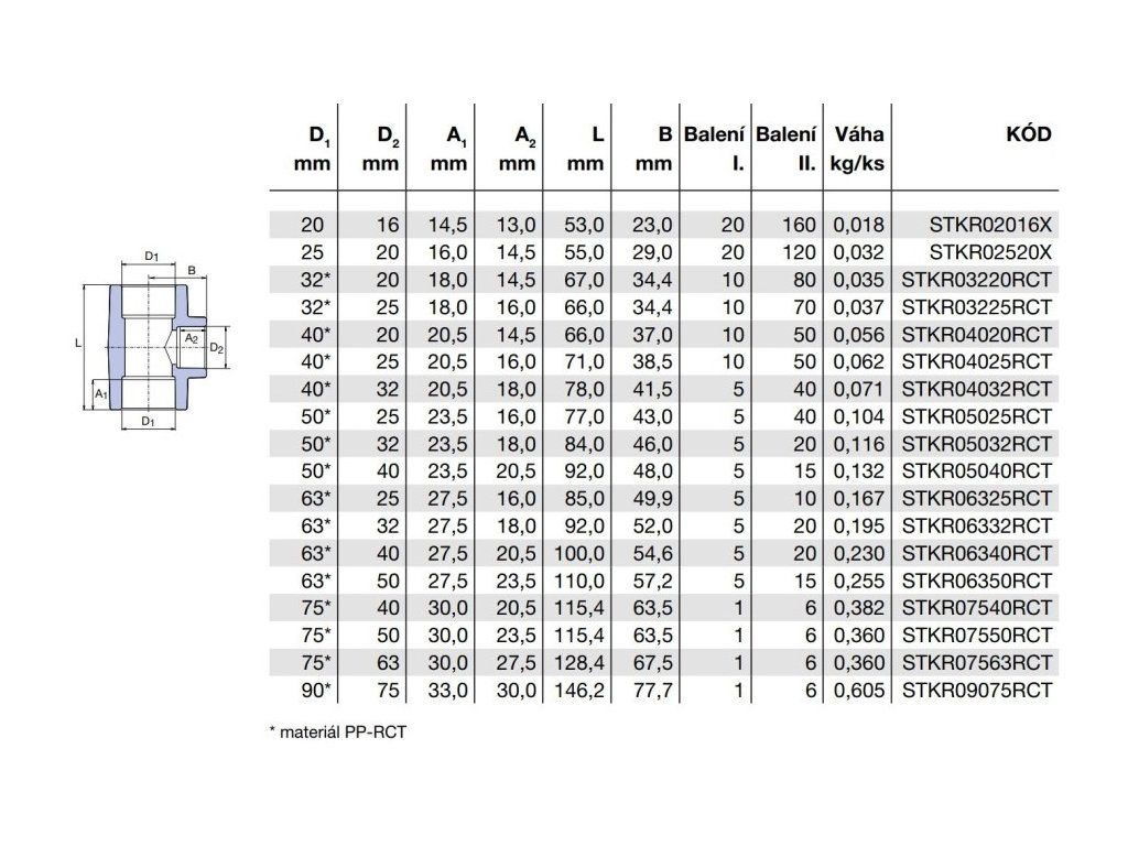 Primární materiál tvarovky | PP-RCT |