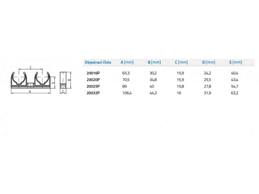WAVIN PRDV0202XX dvoupříchytka 2x20mm, plast, 20020P