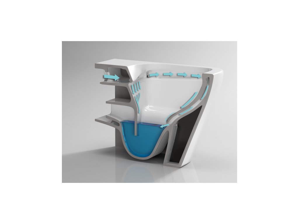 Systém RIMLESS je revoluční bezokruhovým splachováním exkluzivně u tohoto závěsného wc. Tradiční WC klozety mají pod okrajem velmi obtížně přístupná místa, v nichž se shromažďují nečistoty a bakterie. S inovativní technologií RIMLESS byl tento problém vyřešen – ze záchodové mísy byl odstraněn vnitřní „límec“ a tedy i obtížně přístupná místa. Nyní při splachování voda oplachuje všechny vnitřní plochy mísy a snadno se také dostane ke všem vnitřním plochám, mísa je tak vždy dokonale čistá.