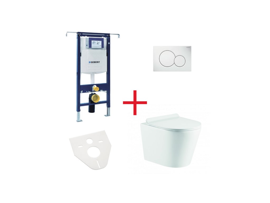 Kompletní WC set obsahující: závěsné WC OVALE BASSO s moderním RIMLESS systémem včetně SLIM sedátka se systémem SOFT-CLOSE, předstěnový modul, podložku, splachovací tlačítko GEBERIT Sigma 01.