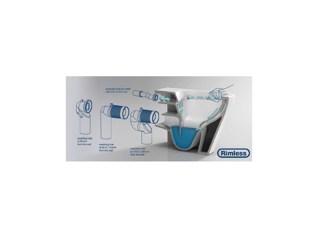 Systém RIMLESS je revoluční bezokruhovým splachováním exkluzivně u tohoto závěsného wc. Tradiční WC klozety mají pod okrajem velmi obtížně přístupná místa, v nichž se shromažďují nečistoty a bakterie. S inovativní technologií RIMLESS byl tento problém vyřešen – ze záchodové mísy byl odstraněn vnitřní „límec“ a tedy i obtížně přístupná místa. Nyní při splachování voda oplachuje všechny vnitřní plochy mísy a snadno se také dostane ke všem vnitřním plochám, mísa je tak vždy dokonale čistá.