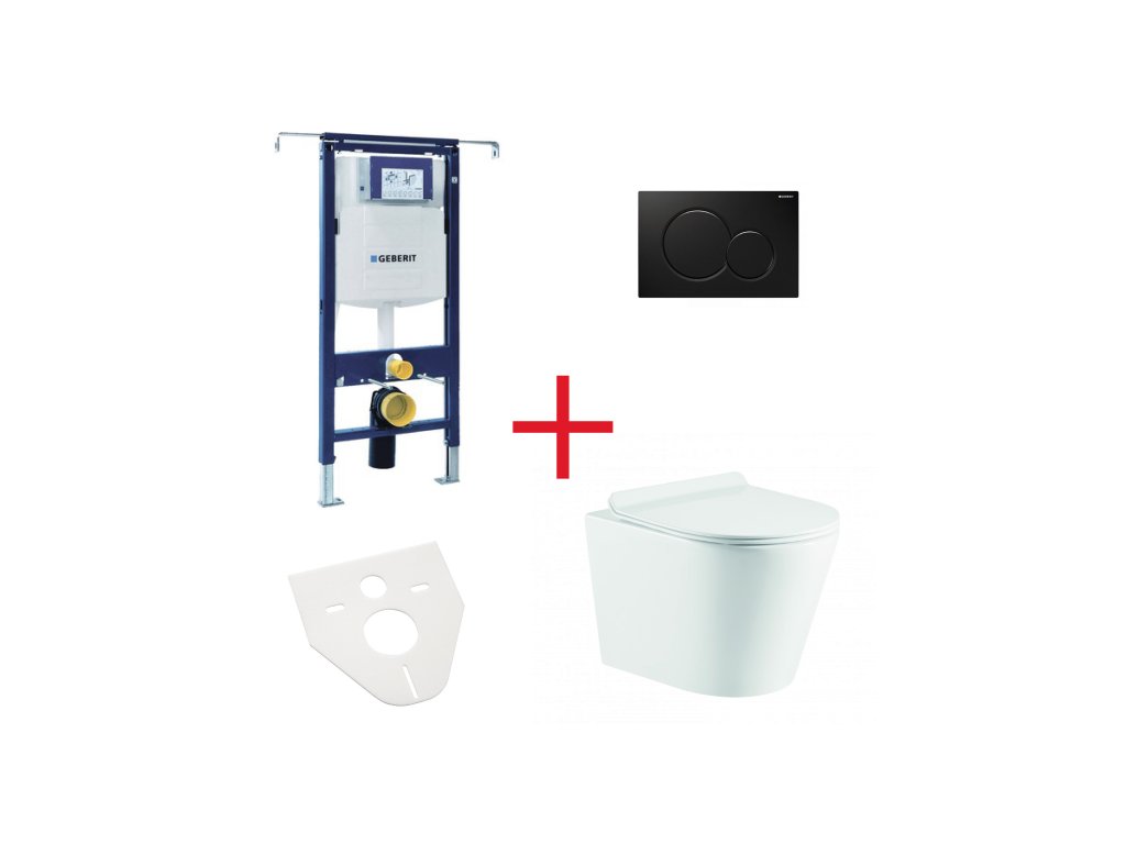 Kompletní WC set obsahující: závěsné WC OVALE BASSO s moderním RIMLESS systémem včetně SLIM sedátka se systémem SOFT-CLOSE, předstěnový modul, podložku, splachovací tlačítko GEBERIT Sigma 01.