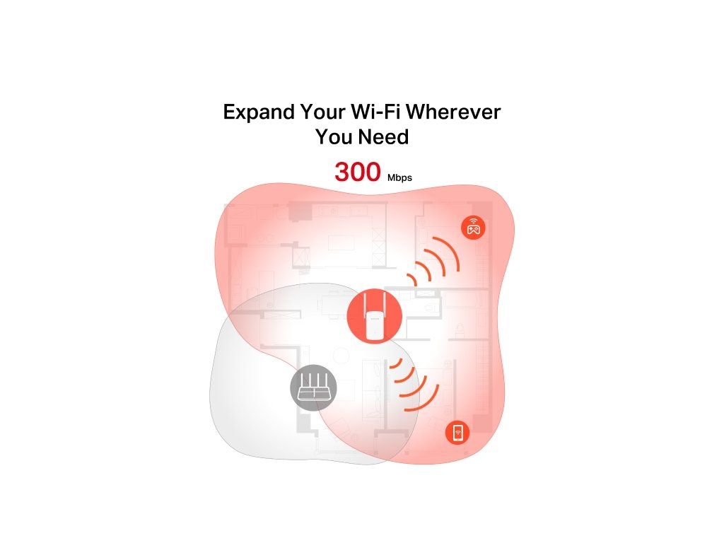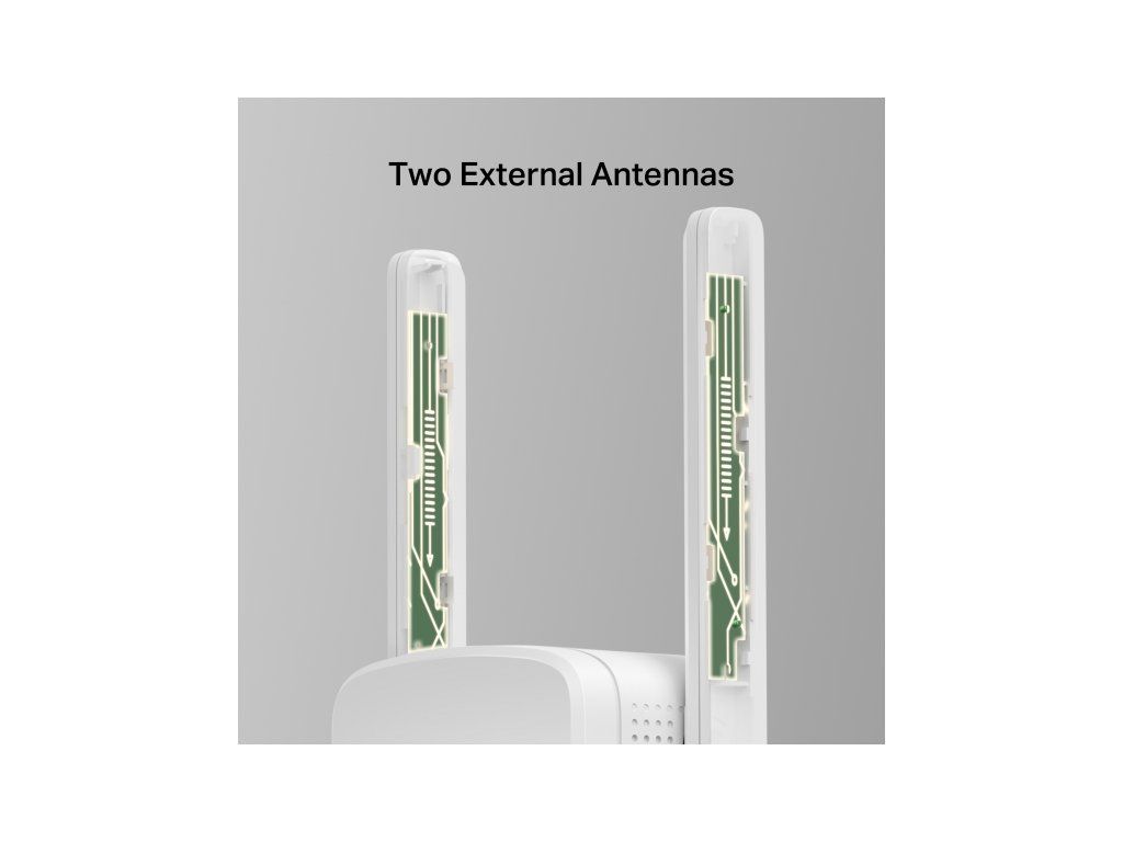 Instalace WiFi extenderu je otázkou několika vteřin. Stačí stisknout tlačítko WPS a zařízení okamžitě rozšíří stávající Wi-Fi síť. Díky dvěma externím anténám získáte silný a stabilní signál i v místnostech, kde byla síť dříve nedostupná.
