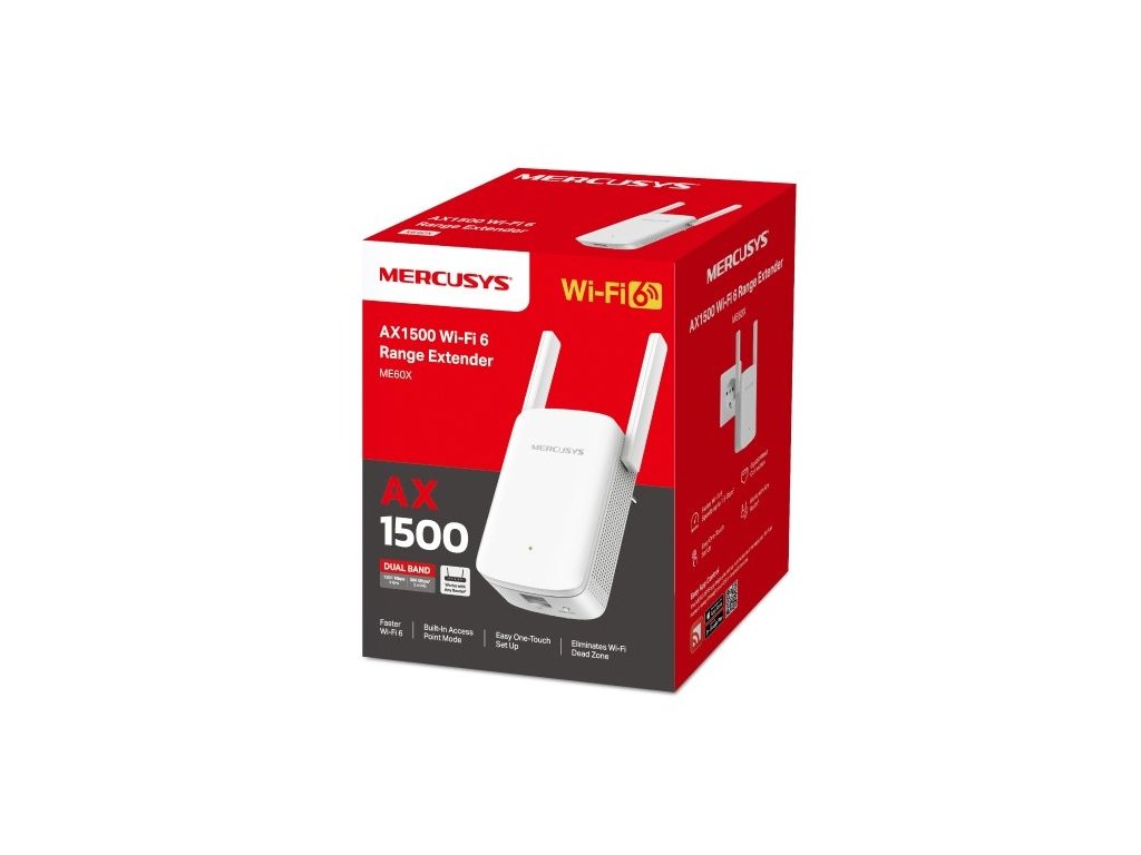Wi-Fi extender Mercusys ME60X vám poskytne dvoupásmové připojení s vysokou rychlostí až 1 500 Mb/s. V pásmu 5 GHz dosahuje rychlost hodnoty 1 201 Mb/s a v pásmu 2,4 GHz až 300 Mb/s. Extender je vybavený 2 nastavitelnými anténami pro stabilní připojení. Propojíte ho s jakýmkoliv routerem. Posílíte signál v celé domácnosti. K dispozici máte režim Range Extender a režim Access Point.