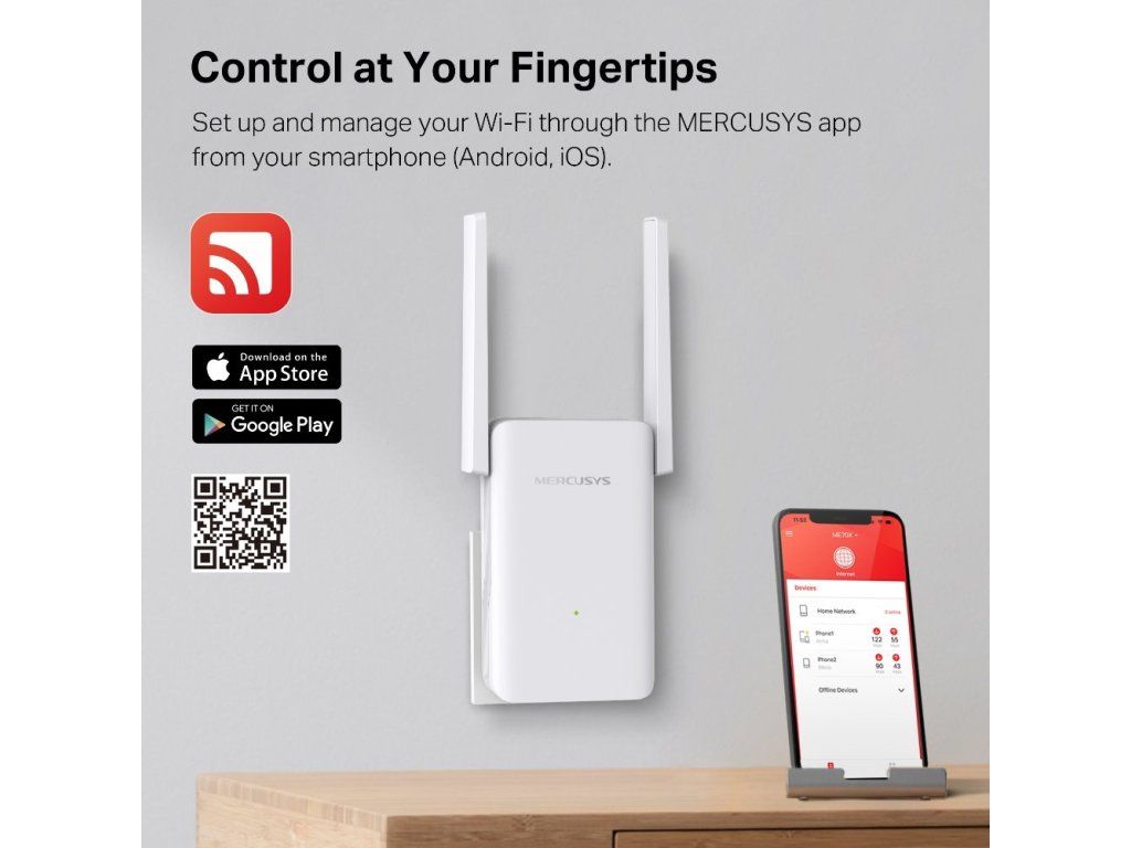 Stáhněte si aplikaci Mercusys do svého mobilního telefonu s operačním systémem Android nebo iOS. Díky ní spravujete extender, ať už jste doma nebo na cestách.