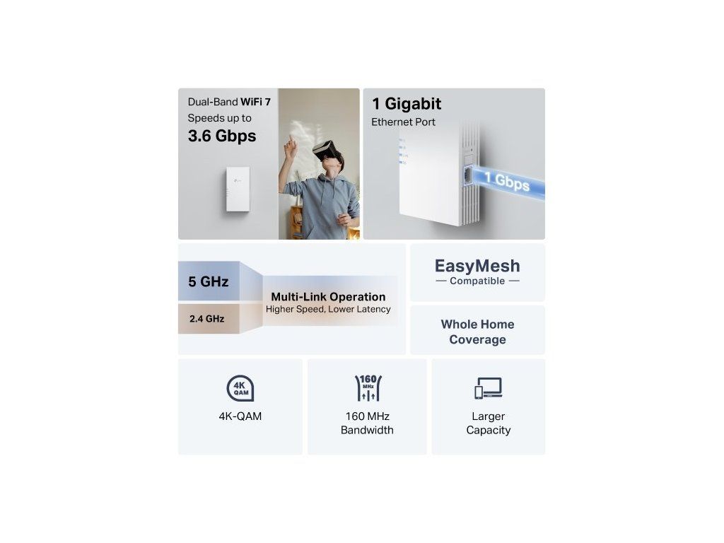 - Typ zařízení: Wi-Fi 7 Extender / Access Point / Repeater