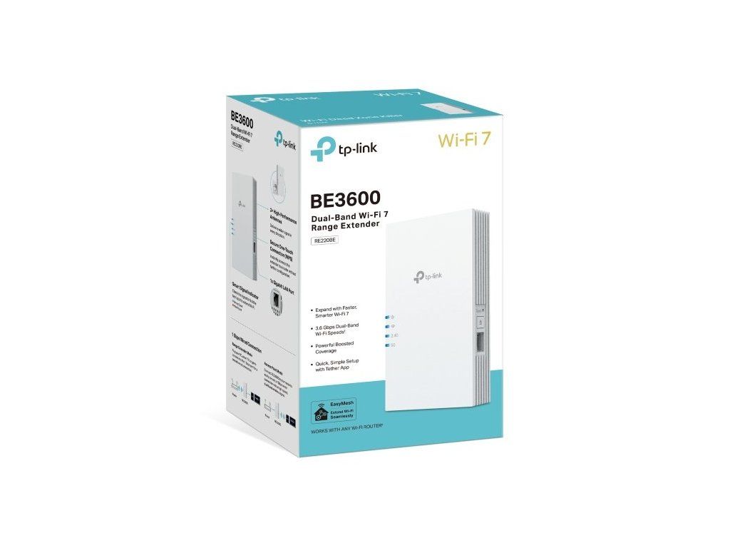 Vylepšete pokrytí své domácnosti s výkonným extenderem TP-Link RE220BE a objevte sílu nové generace Wi-Fi 7. S dvoupásmovou rychlostí až 3,6 Gb/s a podporou EasyMesh zajistí plynulé připojení bez výpadků v každé místnosti.