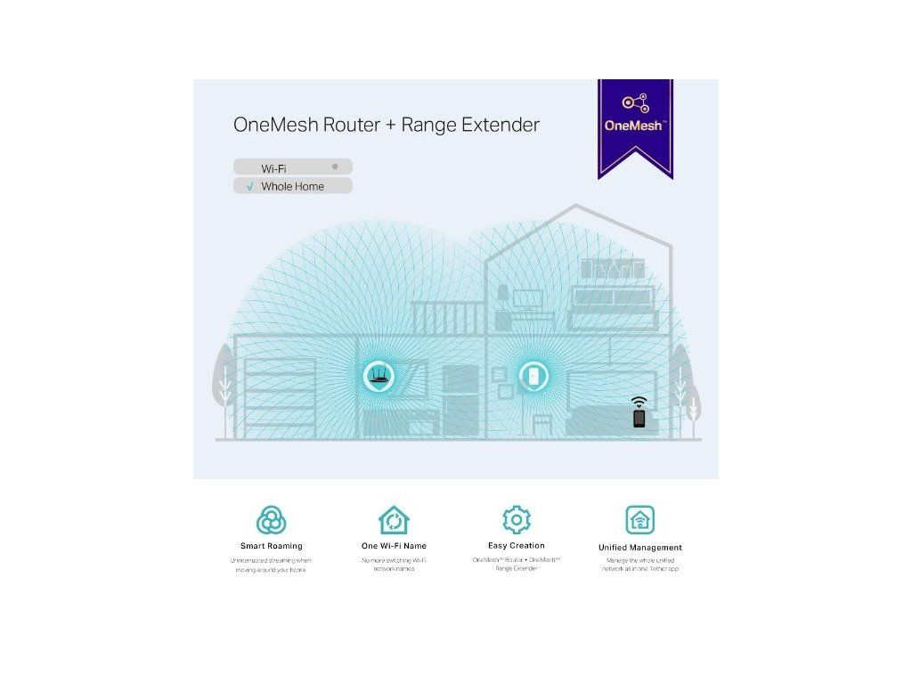 Stisknutím tlačítka WPS můžete snadno nastavit síť Mesh, kterou můžete jednotně spravovat z aplikace Tether nebo Web UI. TP-Link OneMesh ™ je jednoduchý způsob, jak vytvořit síť Mesh s jediným názvem Wi-Fi pro bezproblémové pokrytí celého domova. Tento model spolupracuje s libovolným Wi-Fi routerem nebo bezdrátovým přístupovým bodem.