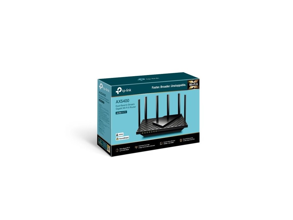 vybaven USB 3.0 portem. Technologií Wi-Fi 6 nabízí celkovou propustnost bezdrátové sítě až 2976 Mbps při šířce kanálu 160 MHz a modulaci 1024-QAM (2402 Mbps / 5 GHz + 574 Mbps / 2,4 GHz).