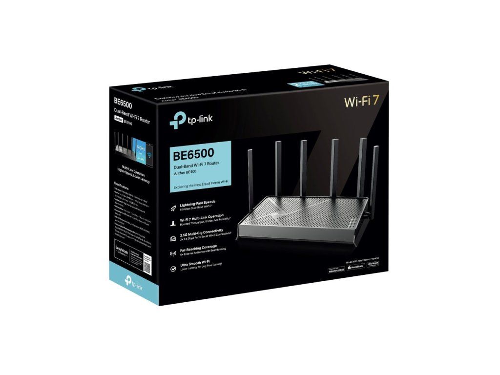 WiFi router TP-Link Archer BE400 BE6500, WiFi 7, 1x 2,5GWAN, 1x 235GLan, 3x 2,5GLan, USB, 2,4/5GHz, EasyMesh, HomeShield, 52449892